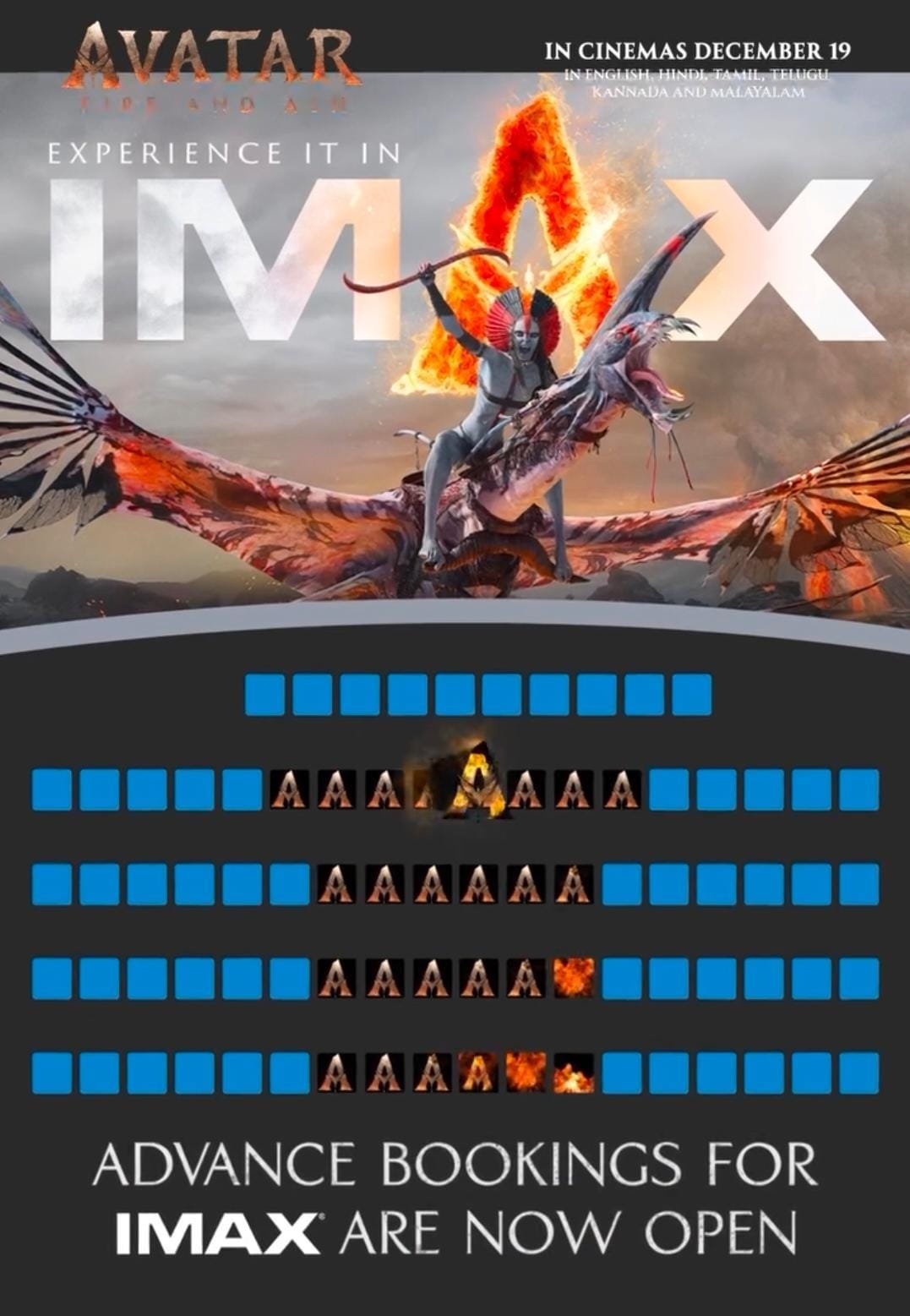 இந்த வருடத்தின் மிகப்பெரிய சினிமா அனுபவமான ’அவதார்: ஃபயர் அண்ட் ஆஷ்’ திரைப்படம் டிசம்பர் 19 ஆம் தேதி வெளியாவதை முன்னிட்டு முக்கிய திரையரங்குகளில் சிறப்பு ஐமேக்ஸ் டிக்கெட் முன்பதிவு கவுண்டர்கள் செயல்பட தொடங்கியுள்ளன.
