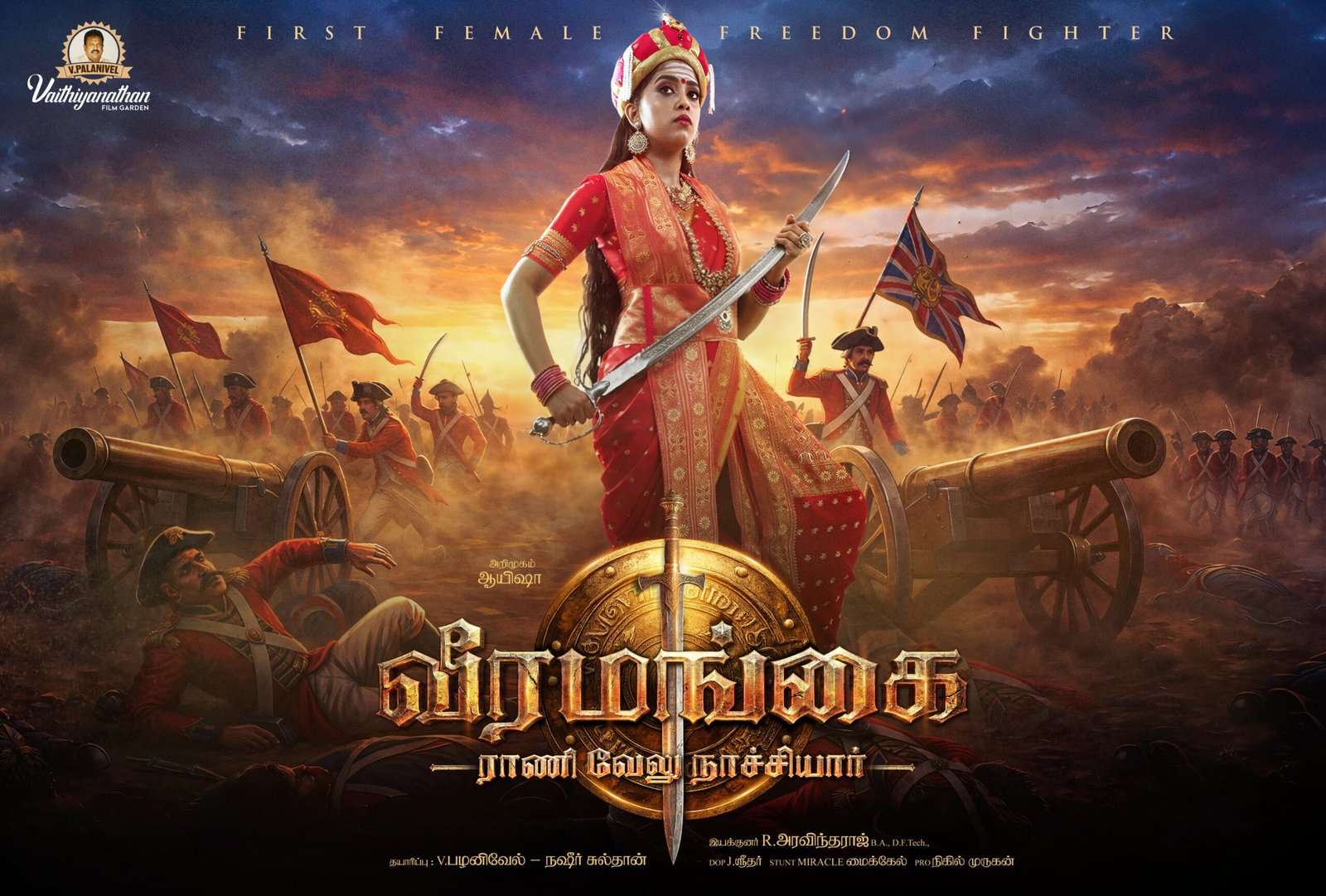The biopic portrays the inspiring life of Velu Nachiyar, the fearless queen of Sivagangai and one of India’s earliest women freedom fighters. After her husband Muthuvaduganatha Thevar is killed by the British East India Company, Velu Nachiyar rises from exile to lead a determined resistance. Trained in warfare and strategy, she forges alliances with Hyder Ali and Tipu Sultan, builds a powerful women’s army, and plans a historic counterattack. The film highlights her courage, leadership, and the iconic act of Kuyili, the first female suicide bomber, leading to the recapture of Sivagangai. The story celebrates Velu Nachiyar as a symbol of valor, sacrifice, and women’s empowerment in India’s freedom struggle.